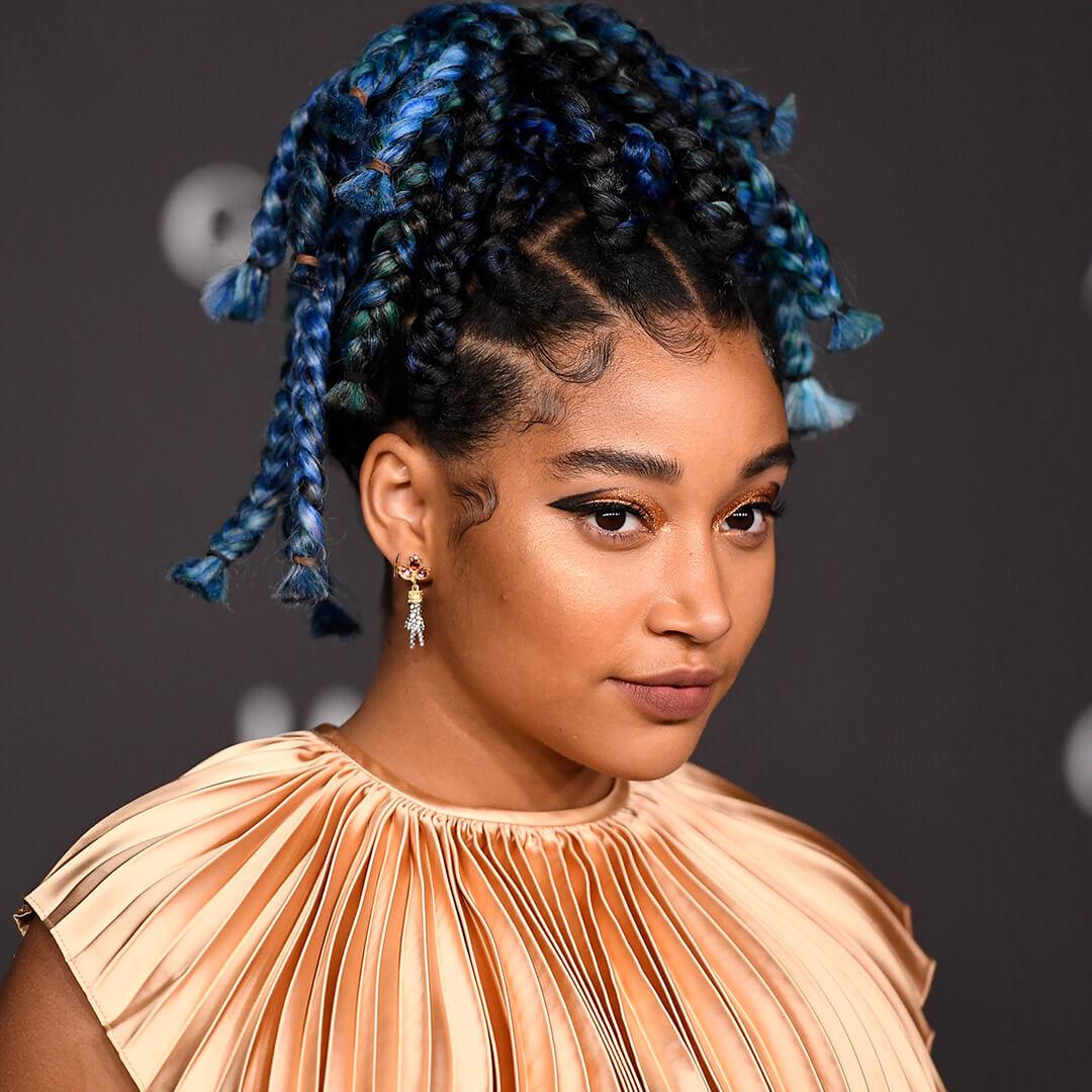 For those with natural hair, adding bright colors into a protective hairstyle like braids has been a fun way to switch things up for a long time now. However, the fresh spin we're loving this year (especially on Amandla Stenberg) is using a variety of different tones within the same color to create dimension and highlights as the color hair weaves in and out of each braid.